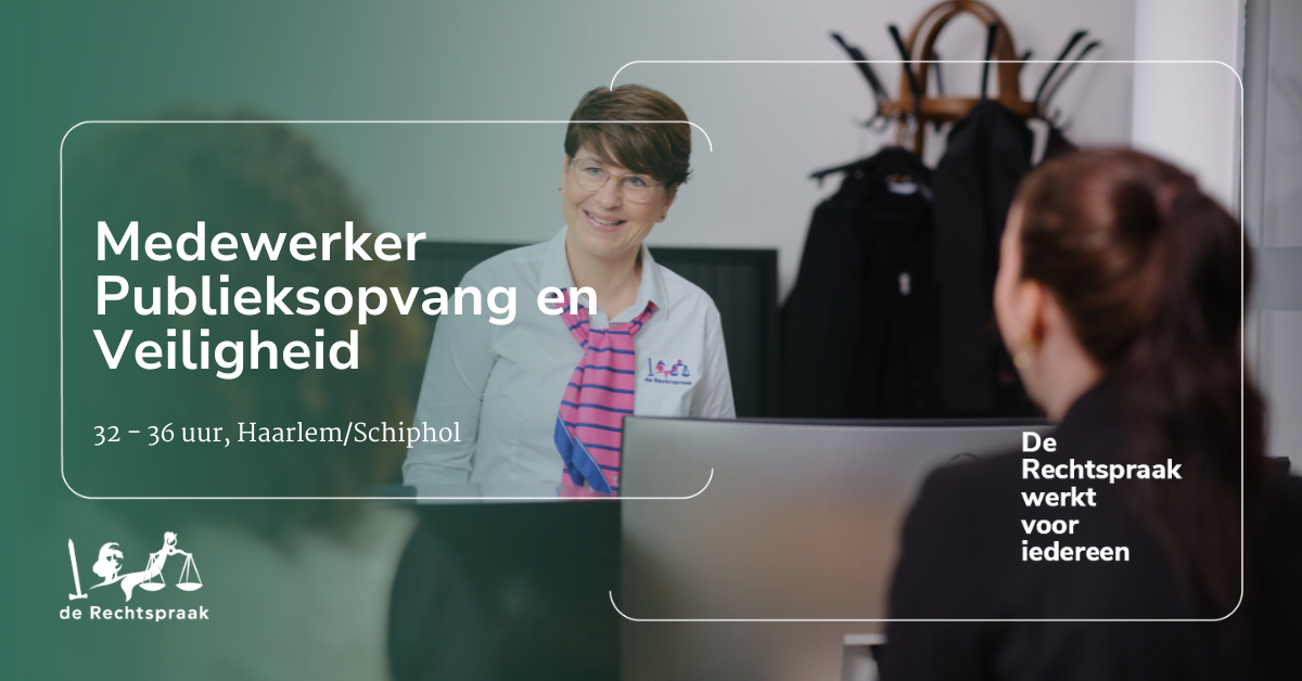 Het eerste gezicht dat mensen zien als ze bij Rechtbank Noord-Holland binnenkomen? Dat ben jij! Collega’s, advocaten en rechtszoekenden: jij helpt ze allemaal. Zo stel je bezoekers die binnenkomen op hun gemak. Regel je dat de juiste documenten klaarliggen voor een zitting. En zorg je dat er geen onveilige situaties ontstaan in het gebouw of daarbuiten. Goed om te weten: je werkt in wisselende diensten van 8 uur, met werktijden tussen 07.00 en 20.00 uur. Weekendwerk komt slechts enkele keren per jaar voor.